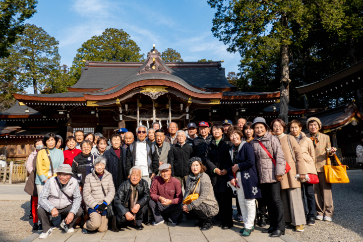 新しい年を迎え、1月16日(金)にシニア連主催の新春初詣を46名の参加を得て行いました。当日は、3月の桜の開花を思わせる暖かい日となりました。